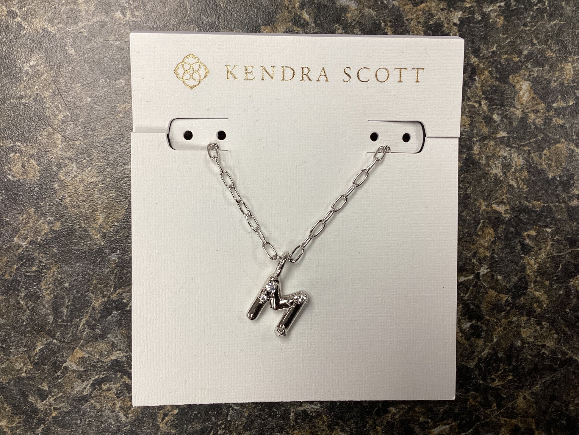 Letter M silver crystal necklac